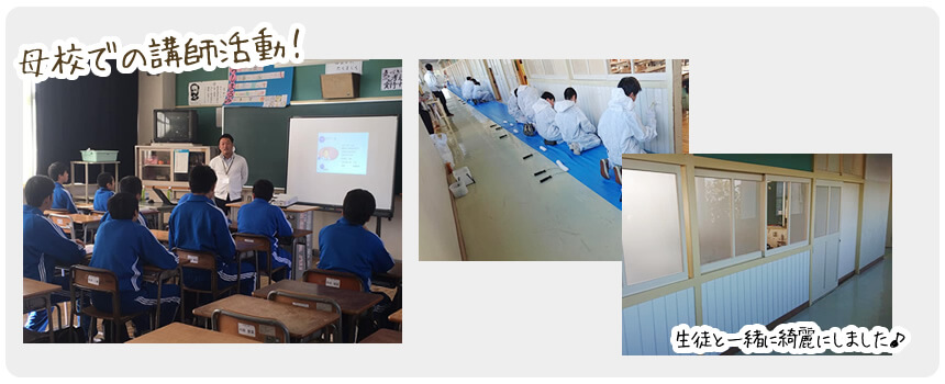 さらに、私の母校で職業体験の講師として招かれ、子供たちに「仕事とは何か?」を講義させていただき、みんなで教室の壁の塗装も行いました。本当に嬉しい体験です。