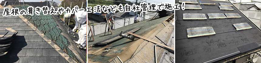 外壁や屋根などの素材の状態が良い場合は、塗装だけで充分ですが、素材が著しく劣化している場合は、葺き替えや貼り替え、カバー工法を行う必要があります。