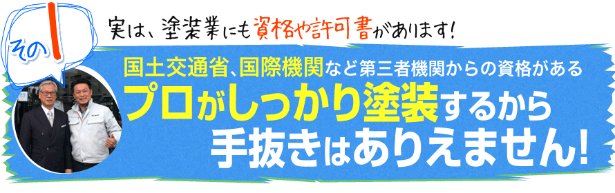 取得後でも不正を行うと、許可書を剥奪される可能性があるため、公共工事などの大型物件の塗装も行っている私どもとしては、剥奪のリスクから考えても手抜きはできません。