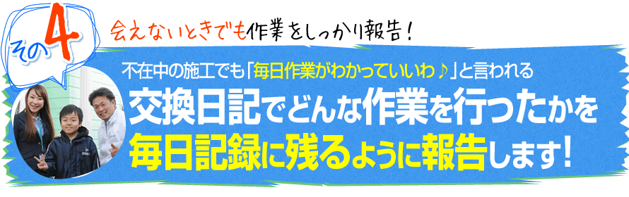 この日記を見たお客様からは「毎日の作業内容がわかっていいわ♪」と言われるくらい評判です。