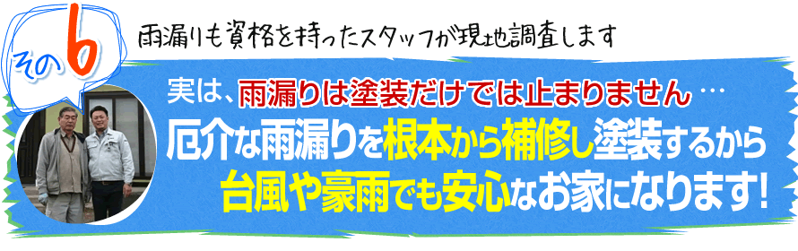 もし、雨漏りがある場合や雨漏りの不安がある方は、私達なら雨漏りを補修したあとに、しっかりと塗装するので、新築以上に綺麗で丈夫なお家になるので、台風が来ても安心して暮らすことが可能です。