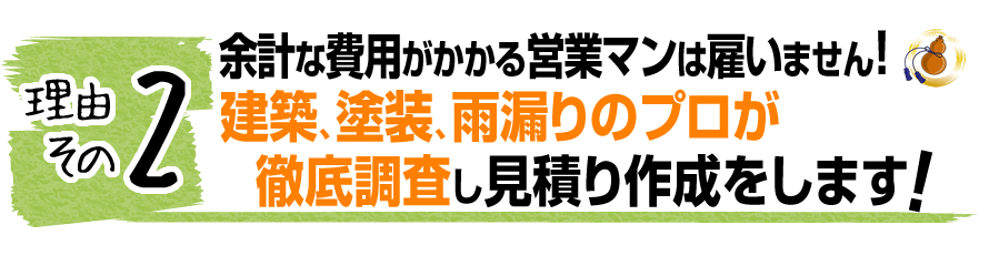 営業マンを雇わないことで、余計な人件費がかからないので、低価格で施工することが可能です。