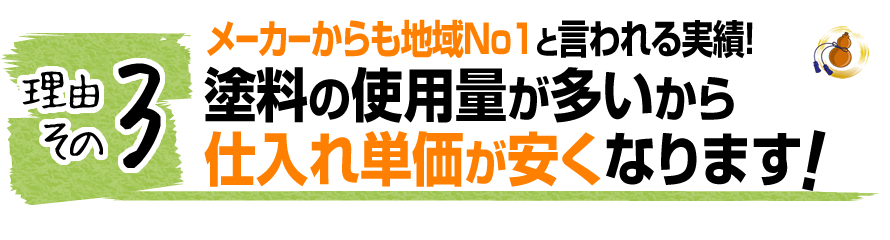 この仕入れのときに、年間100缶しか仕入れない塗装店と年間1,000缶仕入れる塗装店を比べると、1,000缶仕入れる塗装店の方が1缶当りの単価を安くしてもらえます。
